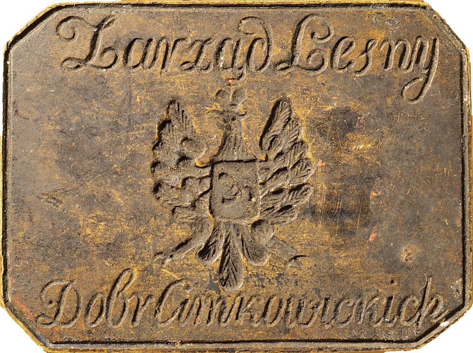 Il. 10 . Matryca tłoka pieczęci Zarządu Leśnego Dóbr Cimkowickich, XIX w., ośmioboczna 31x 42 mm