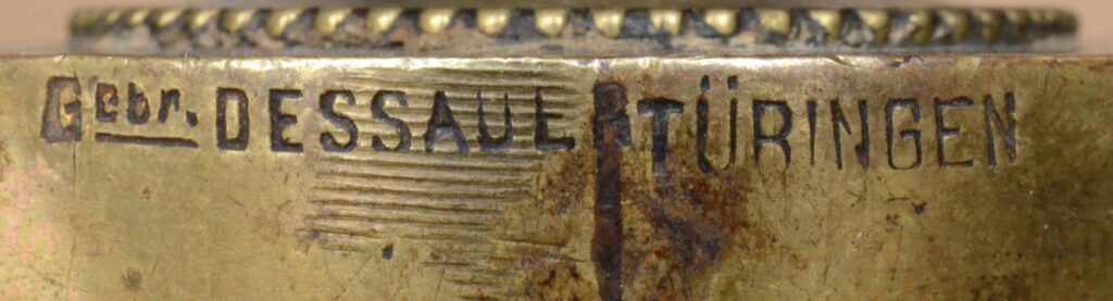 | 12 | na podstawie mechanizmu cyfra 4, na mechanizmie sprężynowym sygnatura wytwórcy: Gebr(üder) DESSAUER TÜRINGEN |