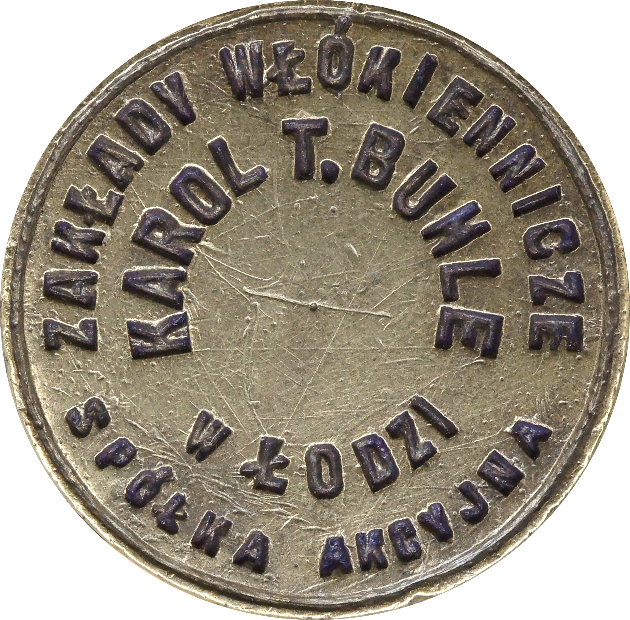 | 9b | w pierścieniu zewnętrznym: ZAKŁADY WŁÓKIENNICZE // SPÓŁKA AKCYJNA w pierścieniu wewnętrznym: KAROL T. BUNLE // w ŁODZI |