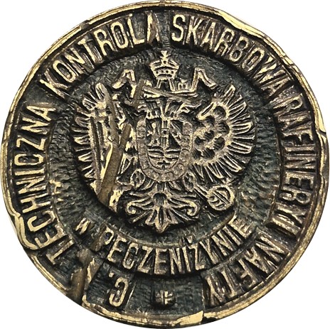 | 9b | w otoku: * C. [K.] TECHNICZNA KONTROLA SKARBOWA RAFINERYI NAFTY w polu (w półotoku poniżej wizerunku): w PECZENIŻYNIE |
